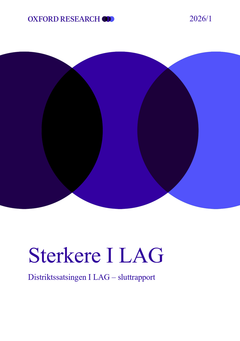 Oxford Research har fått i oppgave å undersøke regionale distriktssatsinger generelt, og «I LAG» spesielt. Formålet er å vurdere hva som er bærekraftige samarbeidsformer mellom fylkeskommuner, kommuner og andre regionale aktører (som statsforvalteren, Innovasjon Norge, Husbanken, KS mv.) for å nå målene i satsingene.